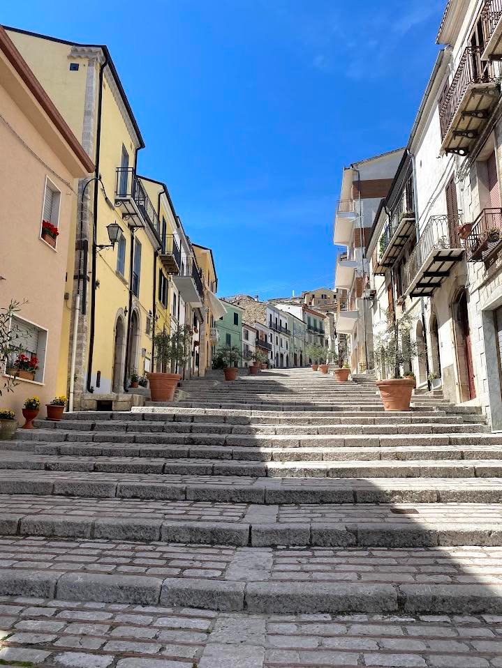 Trivento è un piccolo borgo posizionato su un monte, qui ho trovato pace e tranquillità, come se il tempo si fosse fermato. Appena parcheggiata l’auto, ho notato l’imponente scalinata di San Nicola, con i suoi 365 gradini: uno per ogni giorno dell’anno. Gli scalini sono in pietra calcarea bianca, ed è una gradinata bellissima! Arrivata in cima, mi sono addentrata nei vari vicoli, dove ho trovato meravigliosi scorci e panorami. Ho raggiunto la cattedrale, che si presenta con una facciata neoclassica. Nei secoli ha subito diversi restauri. Al suo interno, a qualche metro di profondità, si può persino visitare la cripta.