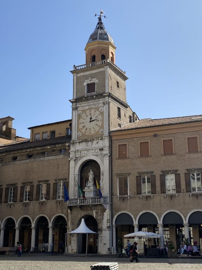 Non si può iniziare la visita senza passare da Piazza Grande, dichiarata Patrimonio dell’Umanità UNESCO insieme al Duomo e alla Torre Ghirlandina. È il cuore pulsante della città, dove arte e spiritualità si incontrano. Qui si trova anche il Palazzo Comunale con la Torre dell’Orologio, simbolo della vita civile e politica di Modena.