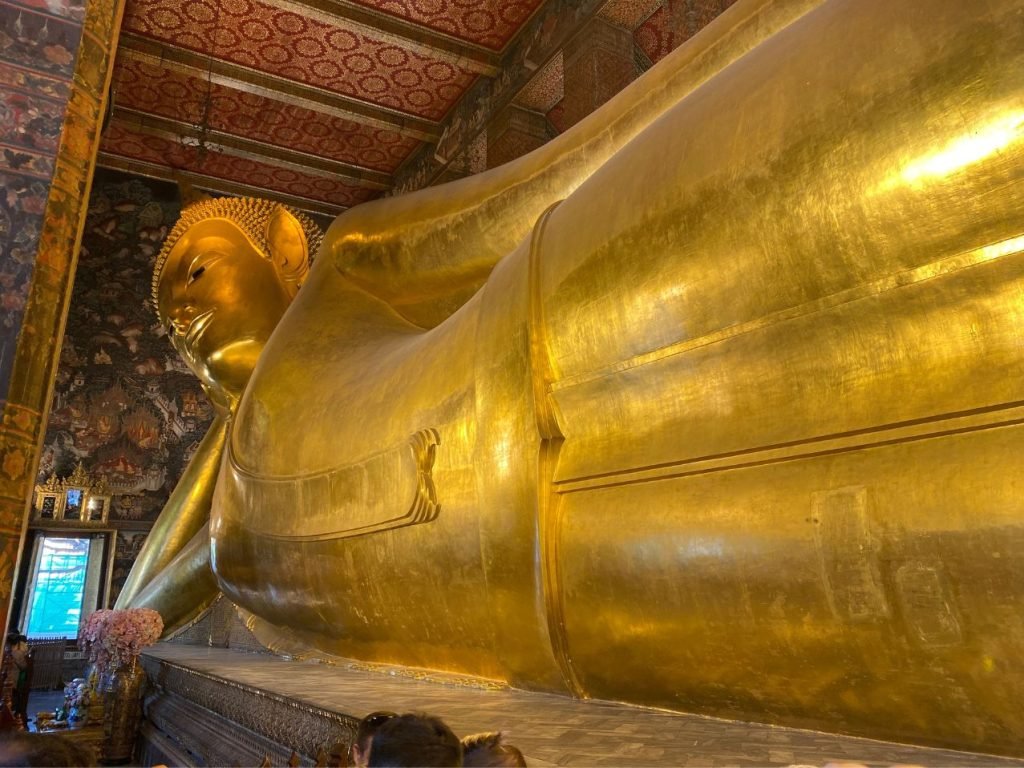 - Seconda tappa: il Wat Pho, Wat Pho, noto anche come il Tempio del Buddha Sdraiato, è uno dei templi più antichi e significativi di Bangkok. Situato nel quartiere Phra Nakhon, a pochi passi dal Palazzo Reale, Wat Pho è celebre per la sua gigantesca statua del Buddha Sdraiato, che misura ben 46 metri di lunghezza ed è ricoperta di foglia d’oro. Questo tempio è anche famoso per essere il centro della tradizione del massaggio thailandese e per ospitare una delle più grandi scuole di massaggio del paese.