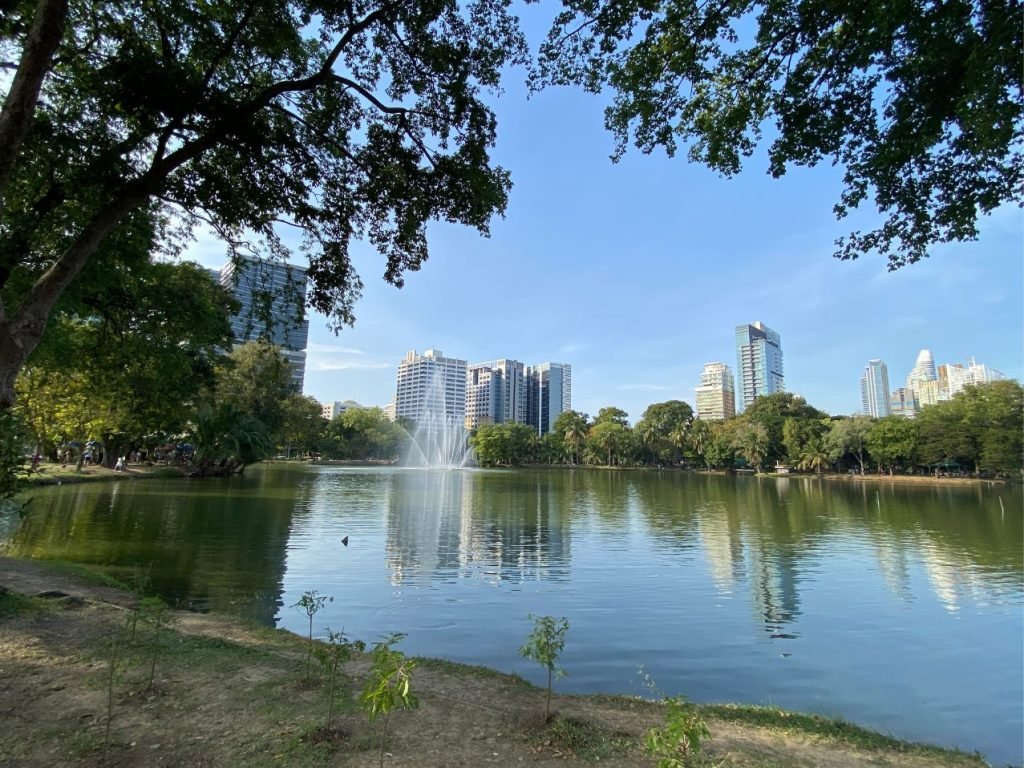 Arrivata al parco, ho subito percepito un’atmosfera diversa dal caos vivace di Bangkok. Il Lumphini Park è un’oasi di tranquillità nel cuore della città, con i suoi sentieri ombreggiati da alberi rigogliosi e le fontane che spruzzano delicate gocce d’acqua, creando un sottofondo rilassante. Mi sono fermata vicino al laghetto, dove l’acqua calma rifletteva il cielo e le sagome degli alberi, creando un’immagine che sembrava uscita da un quadro.