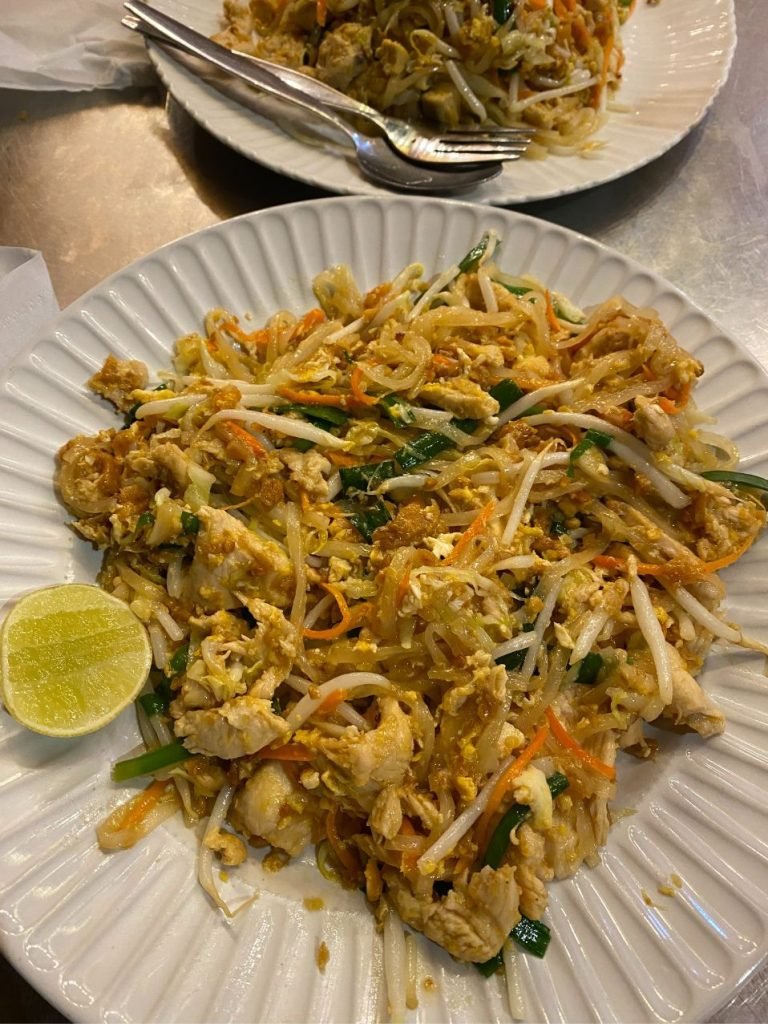 Ho cenato con con un Pad Thai con pollo e una birra locale.
