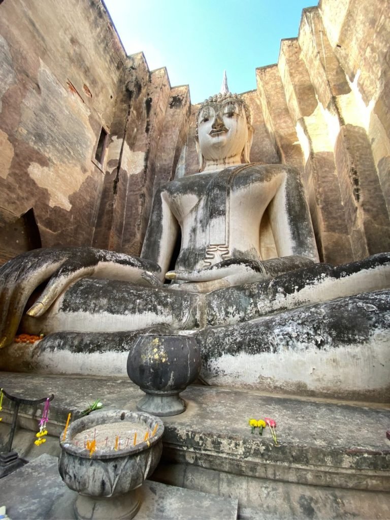 Sukhothai mi ha davvero conquistata. Dopo una colazione che ci ha dato la carica, siamo andati alla scoperta del parco storico di Sukhothai, patrimonio dell’umanità dell’UNESCO. Passeggiando tra le rovine, ho sentito una pace incredibile, come se il tempo si fosse fermato. Il nome Sukhothai, che significa “alba della felicità”, rispecchiava perfettamente l’atmosfera che ci circondava. Il Wat Si Chum, con la sua imponente statua del Buddha, mi ha emozionato profondamente.