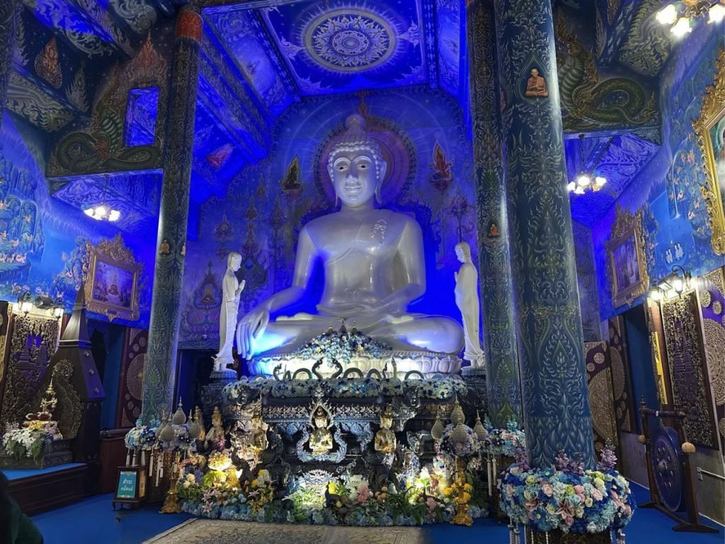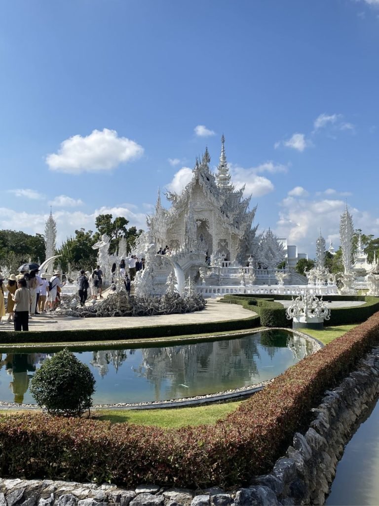 Abbiamo poi visitato il Museo dell’Oppio, un’esperienza che ci ha permesso di comprendere la storia di questa zona e del commercio dell’oppio. Successivamente, ci siamo diretti verso Wat Rong Khun, il Tempio Bianco, che con la sua bellezza surreale e i giochi di luce creati dai riflessi degli specchietti, mi ha lasciato senza parole.