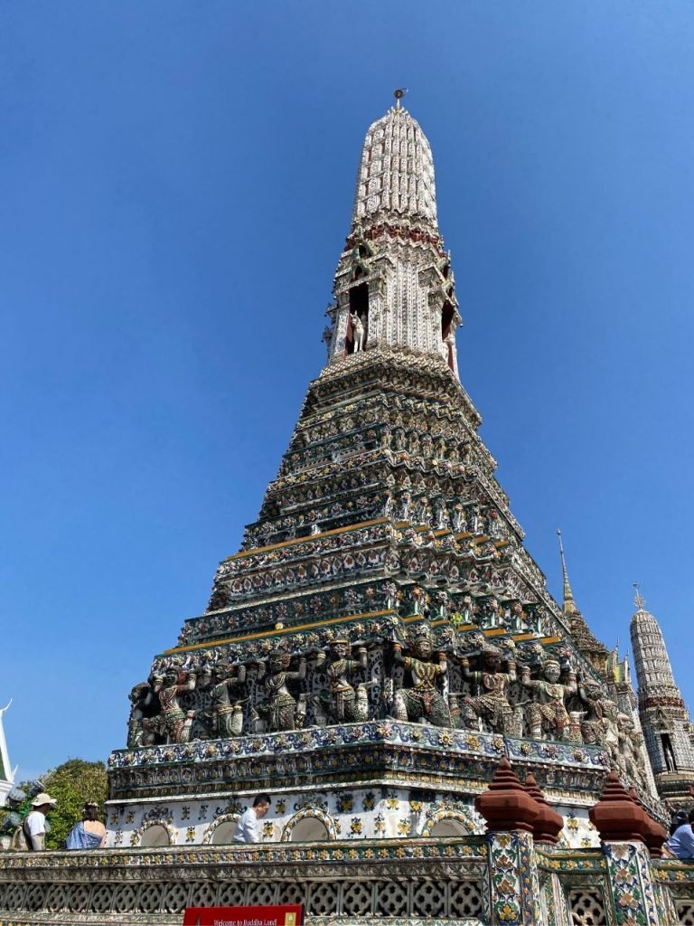 - Terza tappa: il Wat Arun,(Tempio dell’Alba) è uno dei templi più iconici di Bangkok, situato sulla riva occidentale del fiume Chao Phraya. Conosciuto per il suo caratteristico prang (torre centrale), che si staglia maestoso nel panorama della città, Wat Arun è un simbolo della cultura e della spiritualità thailandese. Il tempio è particolarmente suggestivo all’alba e al tramonto, quando la luce crea riflessi dorati sulle sue superfici decorate con ceramiche colorate. Ho raggiunto il tempio prendendo un traghetto dal Tha Tian Pier.