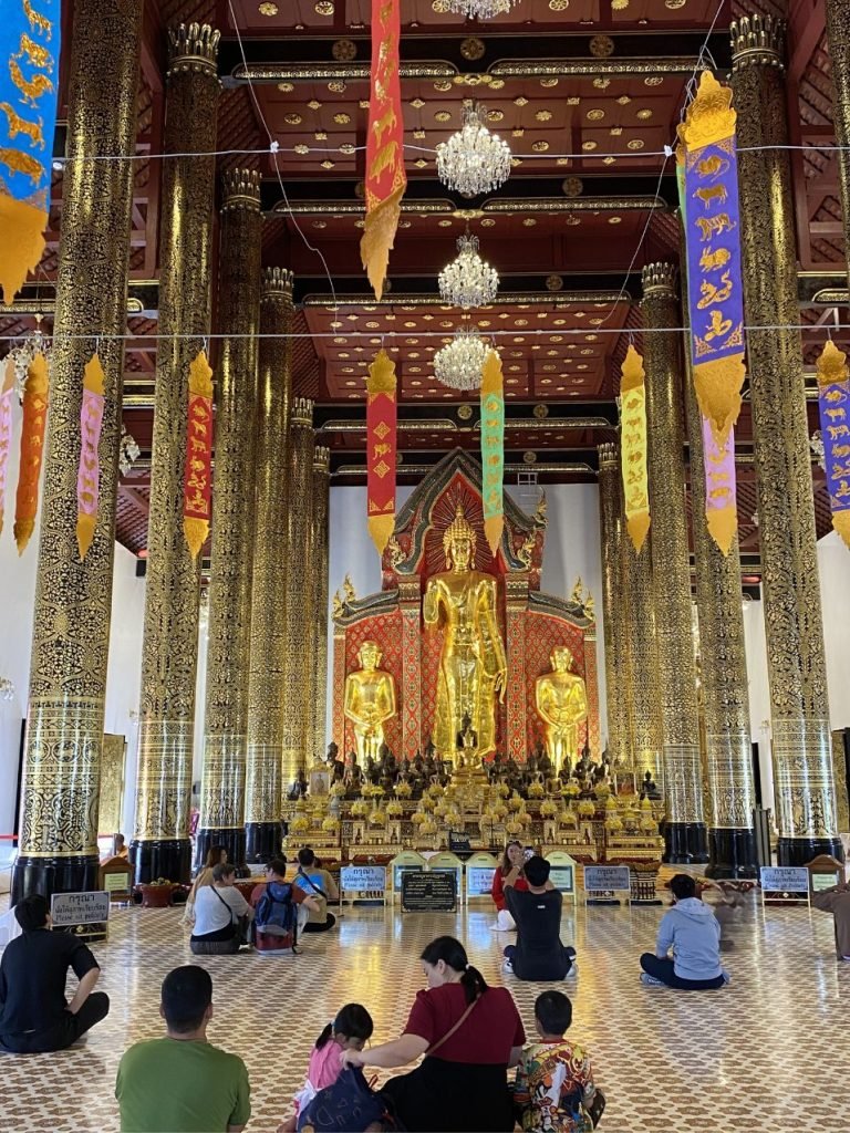 Non distante, ho visitato il più piccolo ma altrettanto affascinante Wat Phan Tao, costruito interamente in legno di teak. Questo tempio mi ha colpita per la sua semplicità e calore. Mentre camminavo sul pavimento di legno, ho pensato a quanto siano preziosi i momenti di silenzio e riflessione che un luogo del genere può regalare.