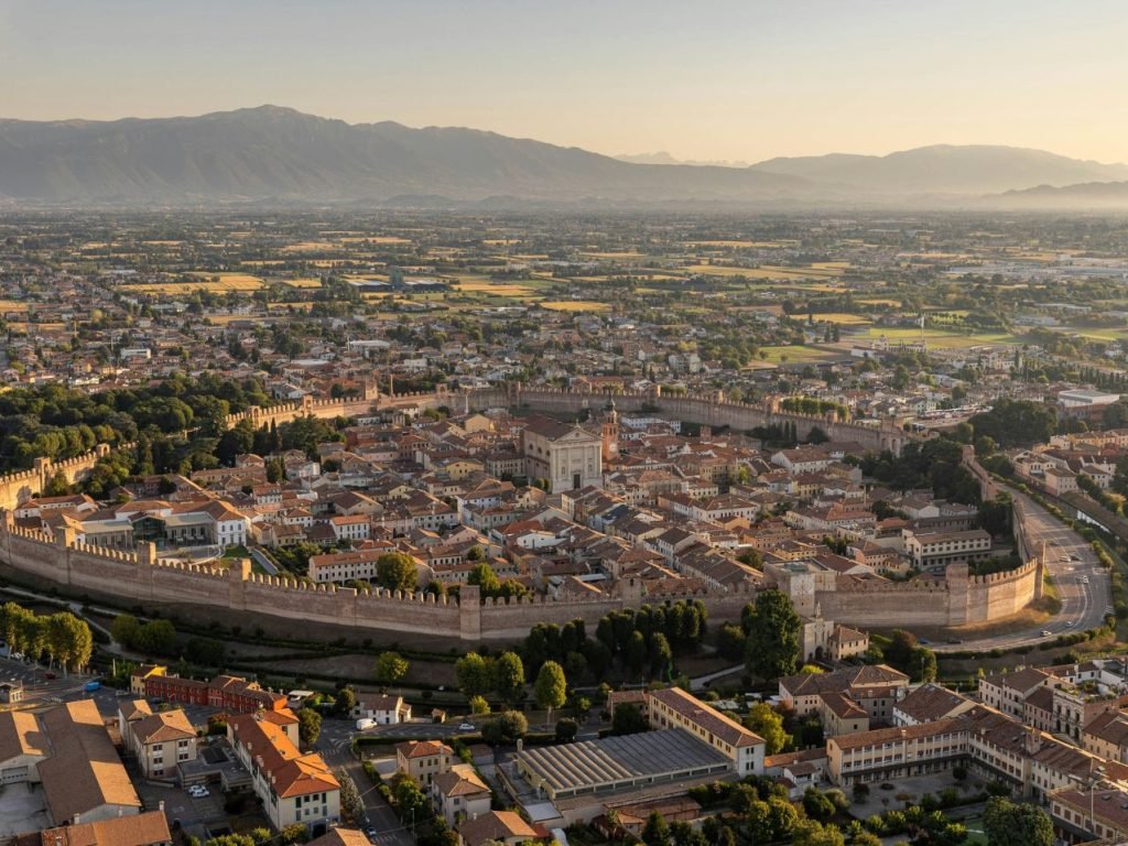 Per l’ultimo giorno, ho lasciato l’altopiano e mi sono diretta verso la pianura. Prima tappa: Cittadella, un borgo che sembra uscito da un libro di storia. La sua cinta muraria medievale è uno dei pochissimi esempi in Europa ancora completamente percorribili. Ho camminato lungo il camminamento di ronda, godendomi ogni scorcio sui tetti, sulle torri e sulle campagne circostanti. È stata un’esperienza emozionante, quasi un salto nel tempo.