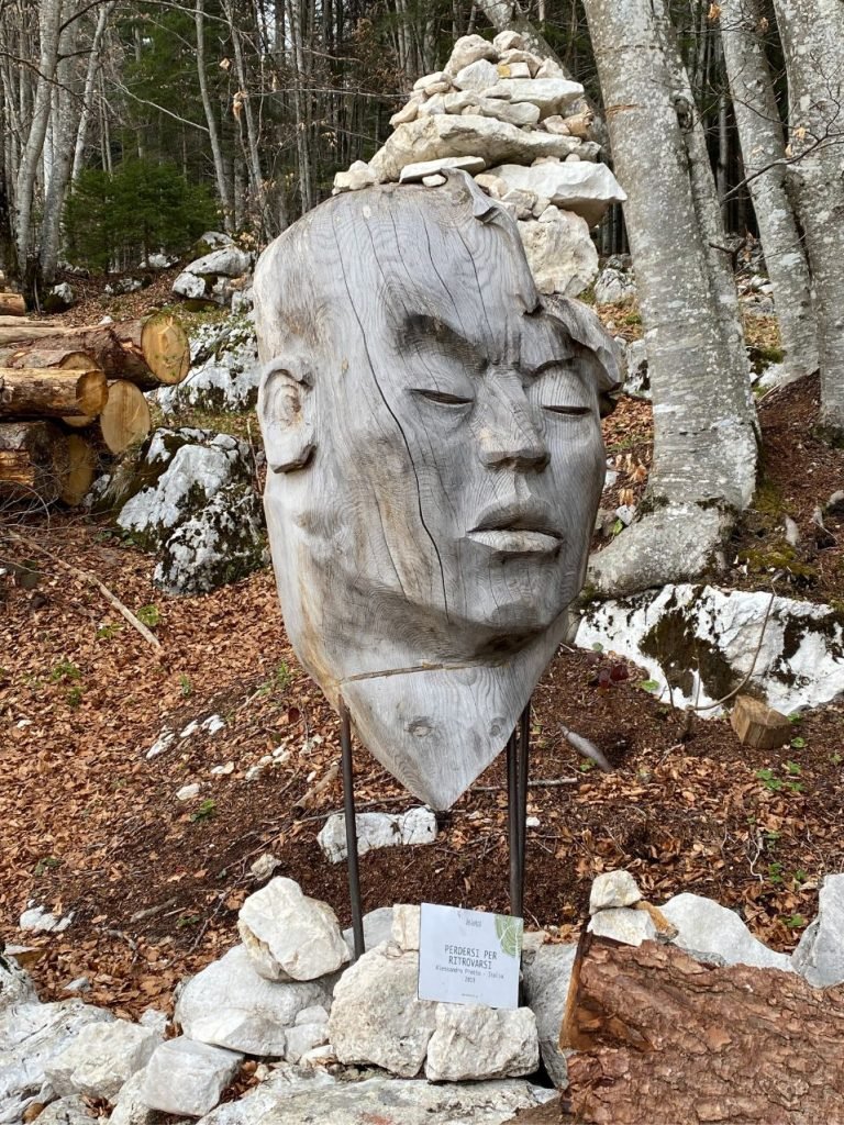 Dopo la visita al Forte Interrotto, mi sono diretta a Roana per esplorare SelvArt, un parco artistico nel bosco che mi ha davvero stupita. Ho lasciato l’auto vicino al ristorante K2 e in pochi minuti di cammino mi sono immersa in un ambiente magico. Tra gli alberi si nascondono installazioni artistiche in legno, ferro e pietra, perfettamente integrate nella natura. Ogni opera invita alla riflessione, al gioco o alla meraviglia. È un luogo dove l’arte incontra il silenzio del bosco e dove ci si sente parte di qualcosa di più grande, in perfetto equilibrio tra creatività e natura.