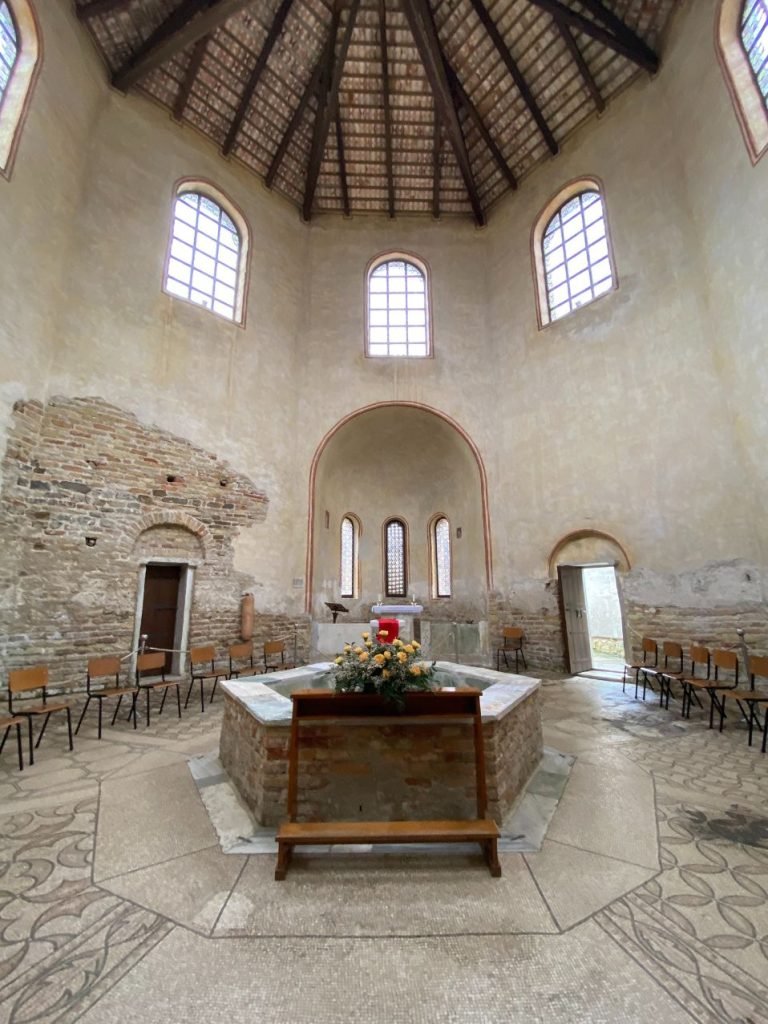 Nel primo pomeriggio mi sono diretta verso Grado, la “Isola del Sole”. Appena arrivata, ho respirato un’aria completamente diversa: profumo di mare, palme e gente in bicicletta. Ho passeggiato lungo il lungomare Nazario Sauro, godendo del panorama sull’Adriatico. La visita alla Basilica di Sant’Eufemia è stata un momento speciale: il pavimento a mosaico paleocristiano è un capolavoro. Ho anche visitato la Basilica di Santa Maria delle Grazie, più piccola ma molto suggestiva.